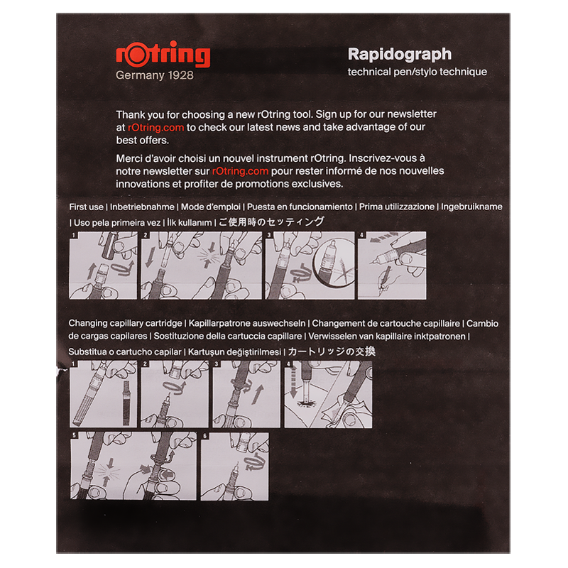 Высокоточная техническая ручка с уникальным капиллярным картриджем от немецкого производителя чертежных принадлежностей и канцелярских товаров rotring.