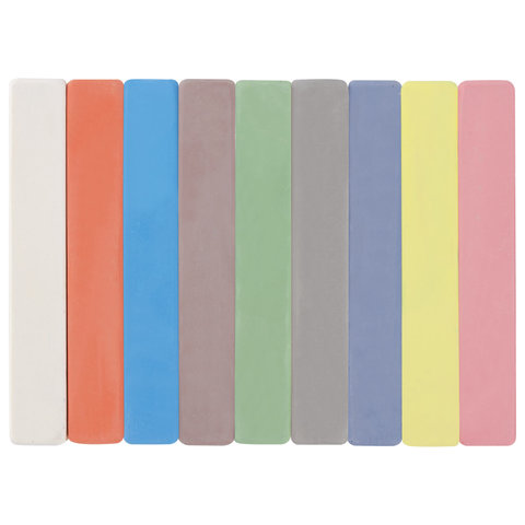 Изготовлен из высококачественного природного сырья без химических добавок. Не содержит твердых включений и не портит поверхность досок. Благодаря квадратной форме легко ложится в руку. Мел средней твердости. Не оставляет царапин. Легко смывается водой. Длина - 78 мм, диаметр - 13 мм. В наборе 8 цветных мелков и 1 белый, всего - 9 штук.