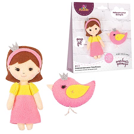 Набор для шитья игрушек " Miadolla " Сказочная принцесса 12см, уровень сложности 1, в наборе: фетр, фетр с блестками, бусины, синтепон, хлопчатобумажные нитки мулине, швейная игла, выкройка, подробная инструкция с картинками, картонная упаковка