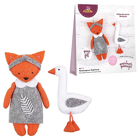 Набор для шитья игрушек " Miadolla " Лучшие друзья 11см, уровень сложности 1, в наборе: фетр, синтепон, хлопчатобумажные нитки мулине, швейная игла, выкройка, подробная инструкция с картинками, картонная упаковка