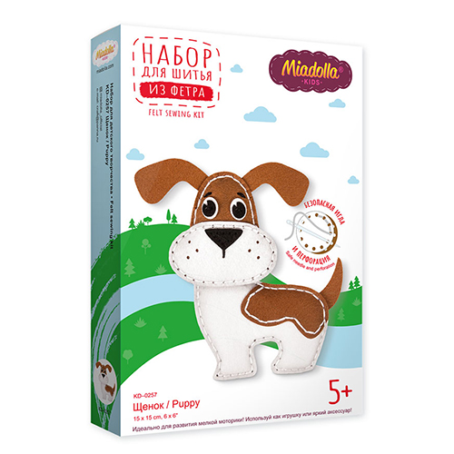 Набор для шитья игрушек " Miadolla " Щенок, состав набора: детали из фетра с перфорацией, безопасная пластиковая игла, нитки, синтепон, подробная инструкция с картинками