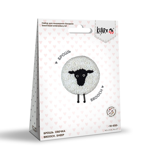 Набор для вышивания " Klart " Брошь 5*4,5см Овечка, состав набора: картон, фетр, хлопчатобумажные нитки мулине "Gamma", бисер, тонкая игла для вышивания бисером Gamma, замок для броши, выкройка, подробная инструкция с иллюстрациями, европодвес
