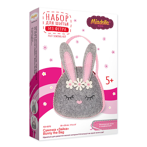 Набор для шитья игрушек " Miadolla " Сумочка "Зайка", состав набора: детали из фетра с перфорацией, безопасная пластиковая игла, нитки, пряжа (акрил), подробная инструкция с картинками