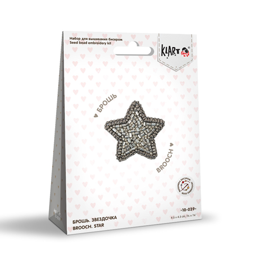 Набор для вышивания " Klart " Брошь 4,5*4,5см Звездочка, состав набора: картон, фетр, хлопчатобумажные нитки мулине "Gamma", бисер, тонкая игла для вышивания бисером Gamma, замок для броши, выкройка, подробная инструкция с иллюстрациями, европодвес