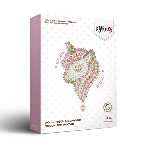 Набор для вышивания " Klart " Брошь 5*9см Розовый единорог, состав набора: артон, фетр, хлопчатобумажные нитки мулине "Gamma", бисер, бусины, тонкая игла для вышивания бисером, замок для броши, выкройка, подробная инструкция с иллюстрациями, картонная упа