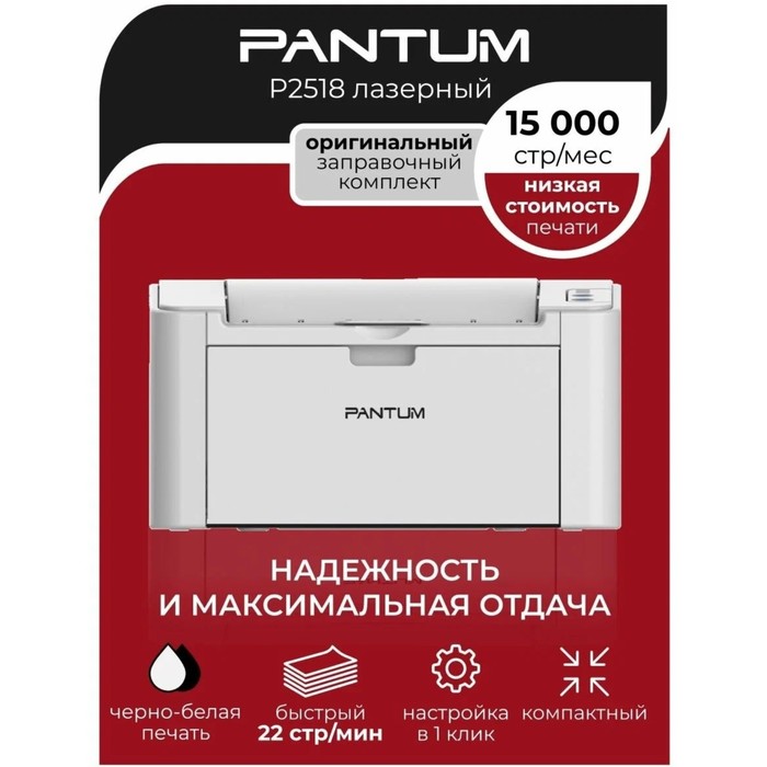 Принтер лазерный ч/б Pantum P2207, 1200x1200 dpi, 20 стр/мин, А4, черный