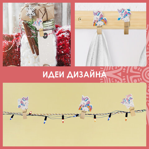 Яркие и невероятно притягивающие взгляд декоративные прищепки, выполненные с изображением единорогов, станут ярким акцентом в интерьере даже сдержанного и классического стилей. Идеально подойдут как для детей, так и для взрослых.