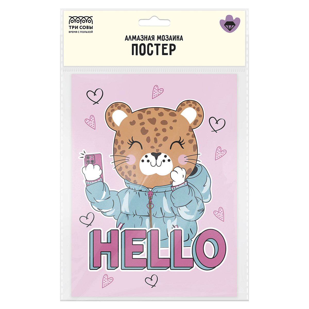 Алмазная мозаика, постер ТРИ СОВЫ "Стильный Лео", пакет с европодвесом