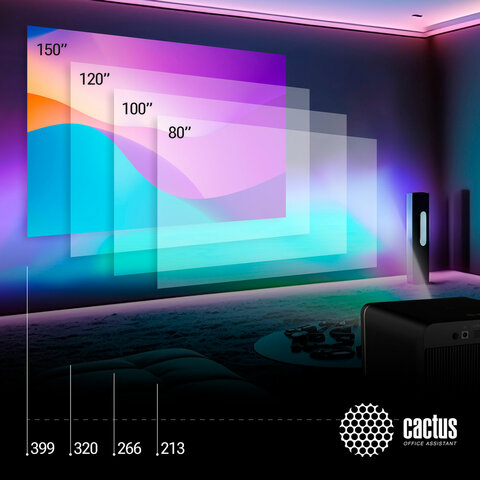 Проектор CACTUS CS-S2.WT, 3LCD, 1024x768, 16:9, 4:3, 40000 лм, 15000:1, 3,26 кг