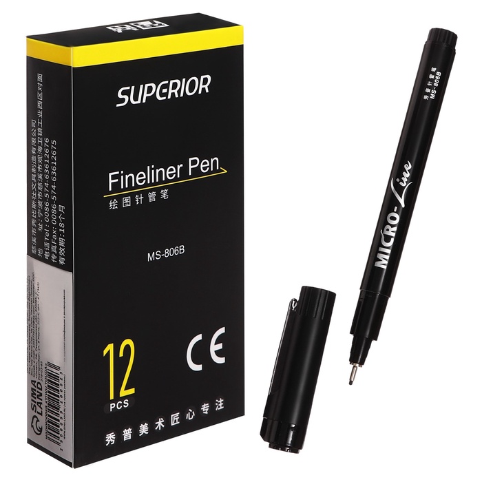Набор ручек капиллярных, линеры Гамма "Студия", 6 штук: 0.05, 0.1, 0.3, 0.5, 0.8, 1.0, чёрный