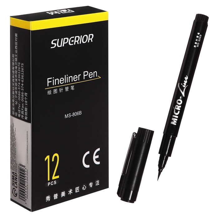 Маркер профессиональный линер черный, тонкая линия, S
