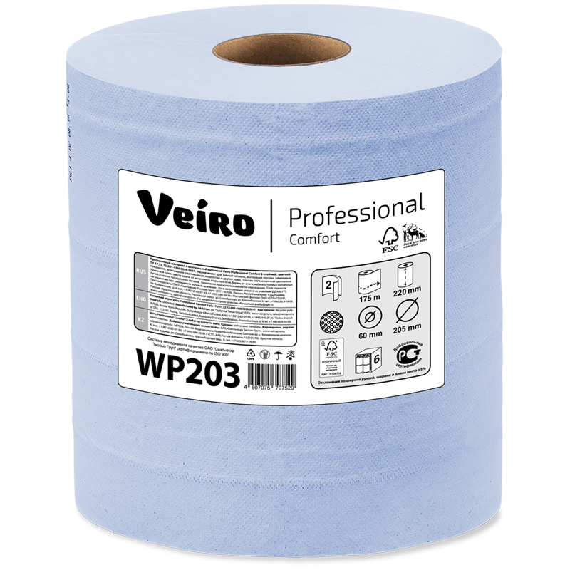 Протирочный материал в рулонах Veiro Professional "Comfort" P1/P2 ЦВ, 2-слойная, 175м/рул., 22*35см, синий