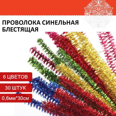 Проволока синельная для творчества "Блестящая", 6 цв., 30 шт., 0,6х30 см, ОСТРОВ СОКРОВИЩ, 661522