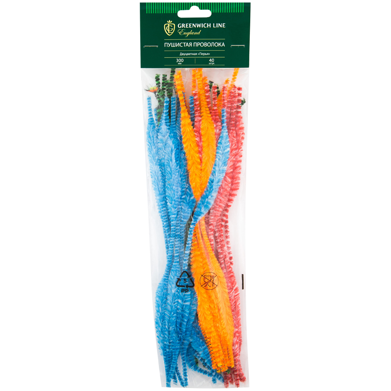 Материал декоративный Greenwich Line "Пушистая проволока", короткое перо, двуцветная, 300мм, 40шт.
