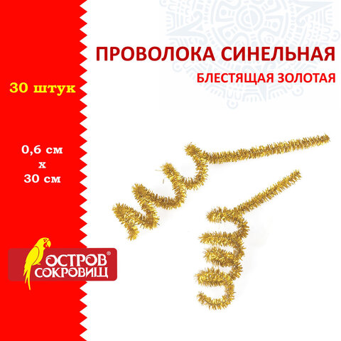 Проволока синельная для творчества "Блестящая", золотая, 30 шт., 0,6х30 см, ОСТРОВ СОКРОВИЩ, 661541
