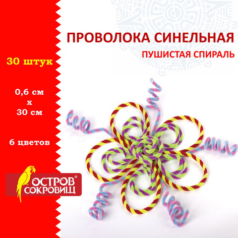 Проволока синельная для творчества "Пушистая", 6 цв., 30 шт., 0,9х30 см, ОСТРОВ СОКРОВИЩ, 661530