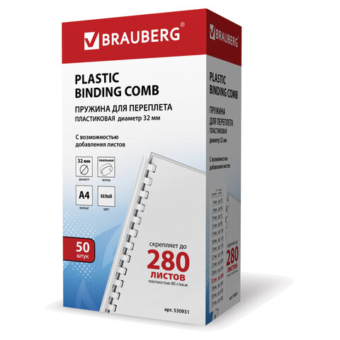 Пластиковая пружина для переплета документов BRAUBERG совместима с большинством переплетных машин. Преимуществом является возможность быстро извлечь документы из переплета или добавить листы в уже переплетенный документ.