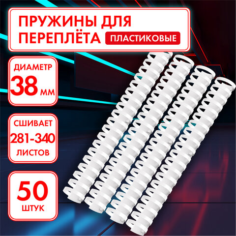 Пружины пластиковые для переплета, КОМПЛЕКТ 50 шт., 38 мм (для сшивания 281-340 л.), белые, ОФИСМАГ, 531464