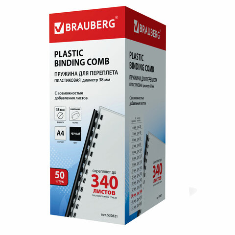 Пластиковая пружина для переплета документов BRAUBERG совместима с большинством переплетных машин. Преимуществом является возможность быстро извлечь документы из переплета или добавить листы в уже переплетенный документ.