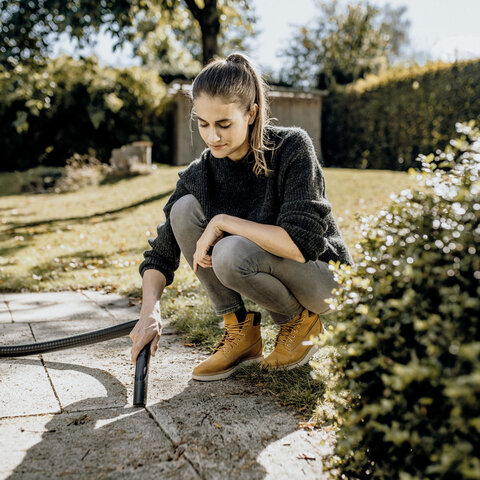 Функция выдува значительно облегчает очистку труднодоступных мест. С ней легко убрать листву или мусор с гравийных дорожек.