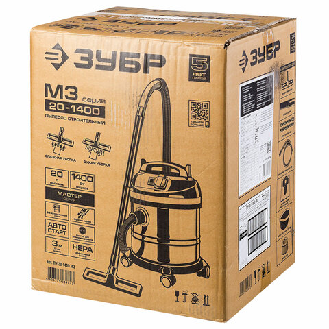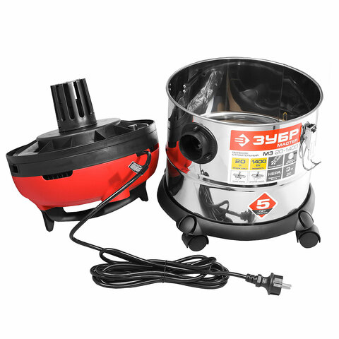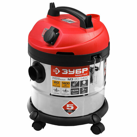 Пылесос хозяйственный ЗУБР ПУ-20-1400 – это многофункциональная модель, которая может использоваться для уборки пыли, жидкостей и крупного мусора. Подходит для сухой и влажной уборки.