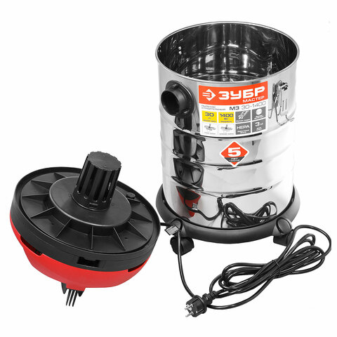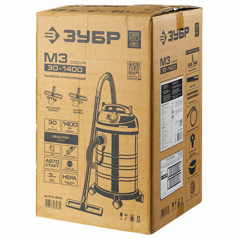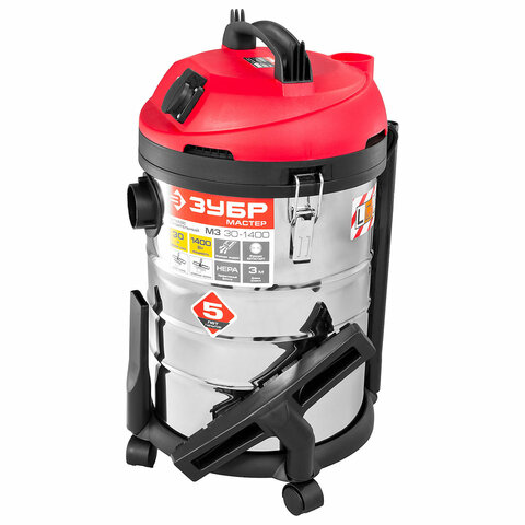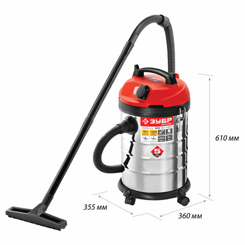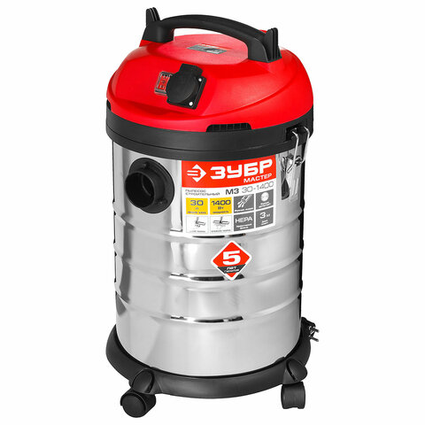 Пылесос хозяйственный ЗУБР ПУ-30-1400 – это многофункциональная модель, которая может использоваться для уборки пыли, жидкостей и крупного мусора.