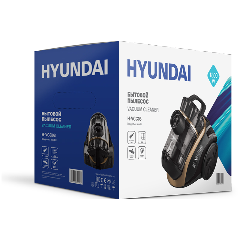 Пылесос Hyundai H-VCC08 обладает высокой мощностью 1800 Вт.<br/>Контейнер для сбора пыли, вместимостью 2 литра, легко чистится и промывается водой, поэтому нет никакой необходимости в сменных расходных материалах. Легкое открытие контейнера нажатием одной кнопки облегчает процесс эксплуатации.<br/>Большие колеса придают пылесосу маневренности и устойчивости, а металлическая трубка благодаря телескопической конструкции позволяет выполнять уборку пользователям любого роста.<br/>Если вы беспокоитесь за микроклимат вашей комнаты, то пылесос H-VCC08 поможет вам сохранить чистый воздух, благодаря HEPA-фильтру, который удерживает даже самые мелкие частицы пыли. В комплект включены насадки для более эффективной уборки в труднодоступных местах: комбинированная насадка пол-ковер и насадка 2 в 1 для мебели и щелевая.