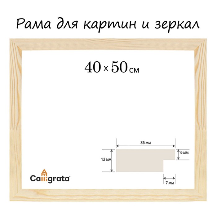 Рама для картин (зеркал) 50 х 60 см, профиль 37 х 18 мм, Emma, неокрашенное дерево (подходит для декорирования)