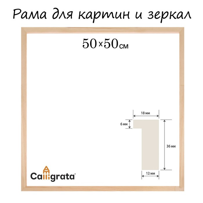 Рама для картин (зеркал) 50 х 50 см, профиль 18 х 36 мм, Liam, неокрашенное дерево (подходит для декорирования)