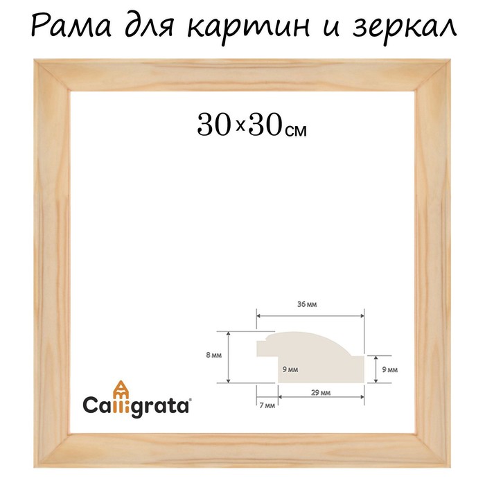 Рама для картин (зеркал) 30 х 30 см, профиль 37 х 18 мм, Emma, неокрашенное дерево (подходит для декорирования)