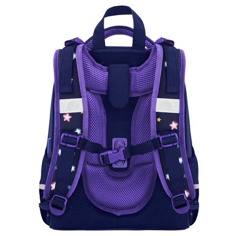 Удобная мягкая вентилируемая спинка с воздушными спонжевыми панелями разработана с учетом анатомических особенностей детей младшего школьного возраста. При правильной регулировке ранец будет практически не ощущаться на плечах и не будет доставлять дискомфорт при носке. В процессе эксплуатации равномерное распределение нагрузки позволит сохранить правильную осанку!