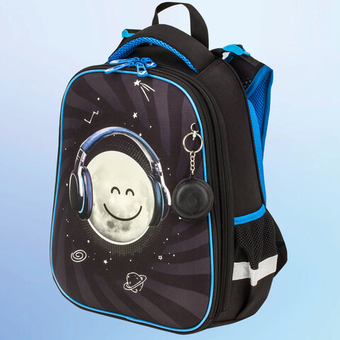 Ранец BRAUBERG серии PREMIUM самой популярной капсульной формы среди ранцев. Изготовлен из легкого, формоустойчивого, экологичного материала EVA с качественной и яркой печатью и различными эффектами. Брелок-подвеска в комплекте. Ранец светится в темноте!