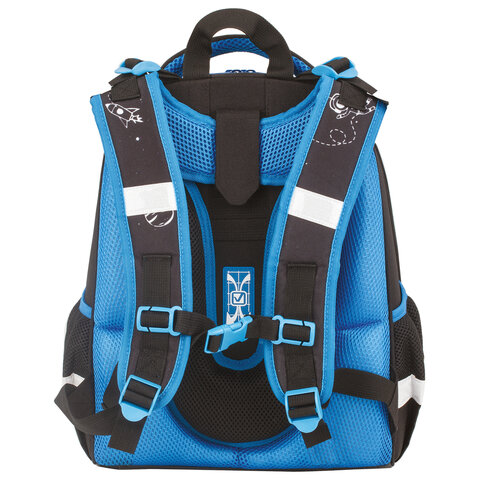 Удобная мягкая вентилируемая спинка с воздушными спонжевыми панелями разработана с учетом анатомических особенностей детей младшего школьного возраста. При правильной регулировке ранец будет практически не ощущаться на плечах и не будет доставлять дискомфорт при носке. В процессе эксплуатации равномерное распределение нагрузки позволит сохранить правильную осанку!