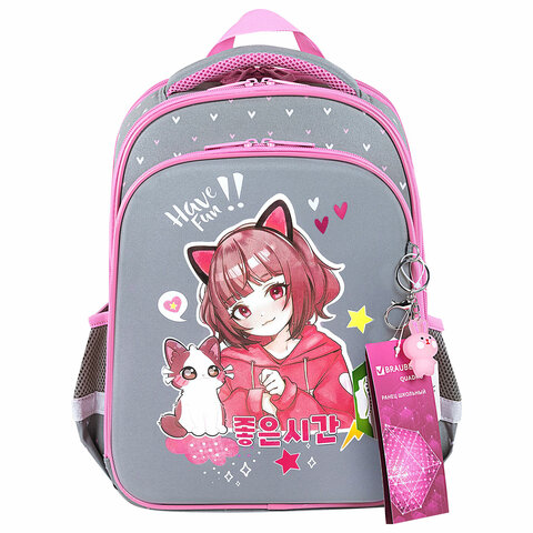 Рисунок на передней панели выполнен шелкографией, а оригинальный брелок-подвеска дополняет дизайн ранца в стиле аниме.