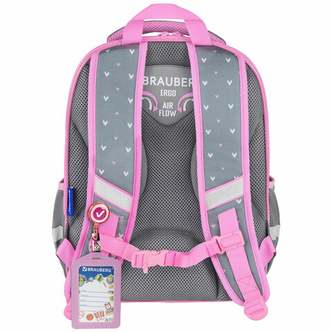 Удобная мягкая вентилируемая спинка с воздушными спонжевыми панелями разработана с учетом анатомических особенностей детей младшего школьного возраста. При правильной регулировке ранец практически не будет ощущаться на плечах и не будет доставлять дискомфорт при носке. В процессе эксплуатации равномерное распределение нагрузки позволит сохранить правильную осанку!