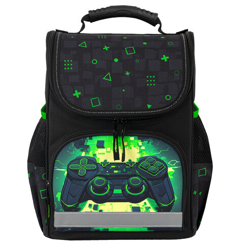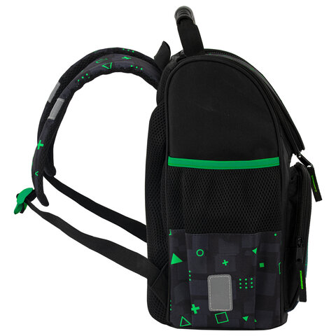 Светоотражающие элементы ранца расположены спереди на переднем кармане, на торцах и на лямках, а также дополнительно верхняя крышка прошита специальной светоотражающей лентой. Это необходимо для безопасности ребёнка в темное время суток.