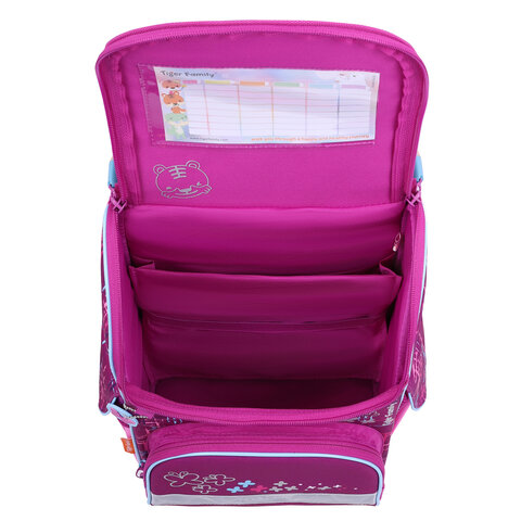 В основном отделении ранца можно легко и быстро разместить учебники и тетради, а также воспользоваться прижимными перегородками на резинке. Внутри ранца имеется вкладыш для заполнения расписания уроков на внутренней стенке крышки ранца.