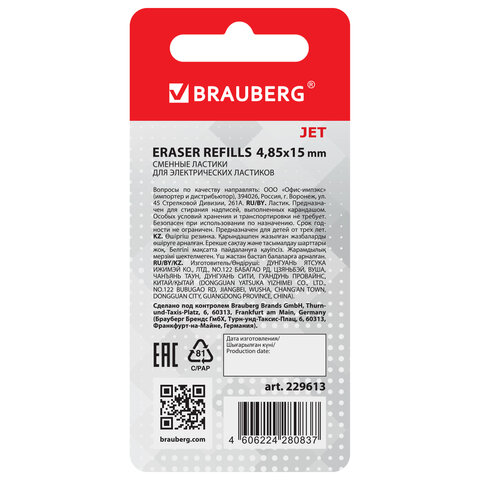 Сменный ластик для электрического ластика BRAUBERG "JET" предназначен для корректировки чертежа, эскиза или скетча без каких-либо усилий, не причиняя вреда бумаге.