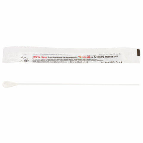 Зонд-тампон пластик/хлопок, намотка 5 мм, стерильный, ЕМЕЛЬЯНЪ САВОСТИНЪ, индивидуальная упаковка, длина 150 мм