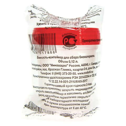 Контейнер для сбора биоматериалов 120 мл стерильный, индивидуальная упаковка