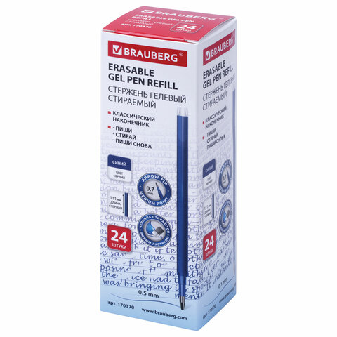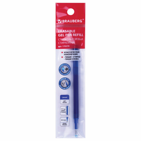 Стержень стираемый гелевый BRAUBERG X-ERASE 111 мм, синий, стандартный узел 0,7 мм, 170409