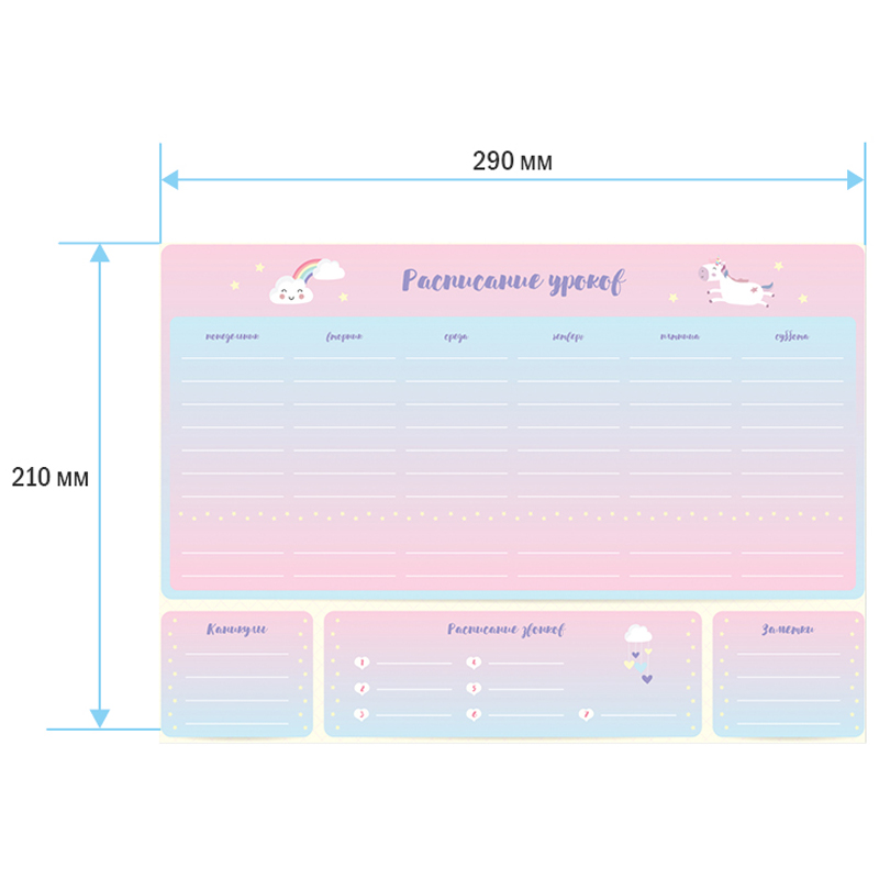 Расписание уроков с расписанием звонков А4 BG "Пиши-стирай. Дивный Мир"