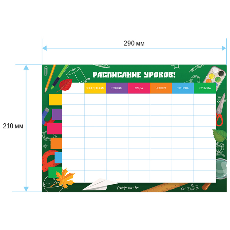 Расписание уроков с расписанием звонков А4 BG "Пиши-стирай. Школьные принадлежности"