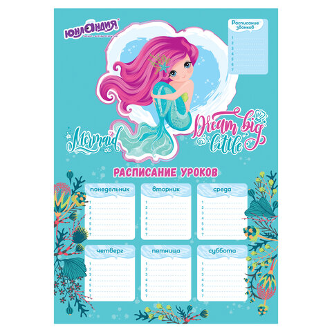 Расписание уроков ЮНЛАНДИЯ разработано специально для детей школьного возраста. Оно идеально подходит для планирования и подготовки заданий в домашних условиях. Поставляется в четырех вариантах дизайна (без возможности выбора).