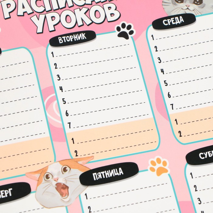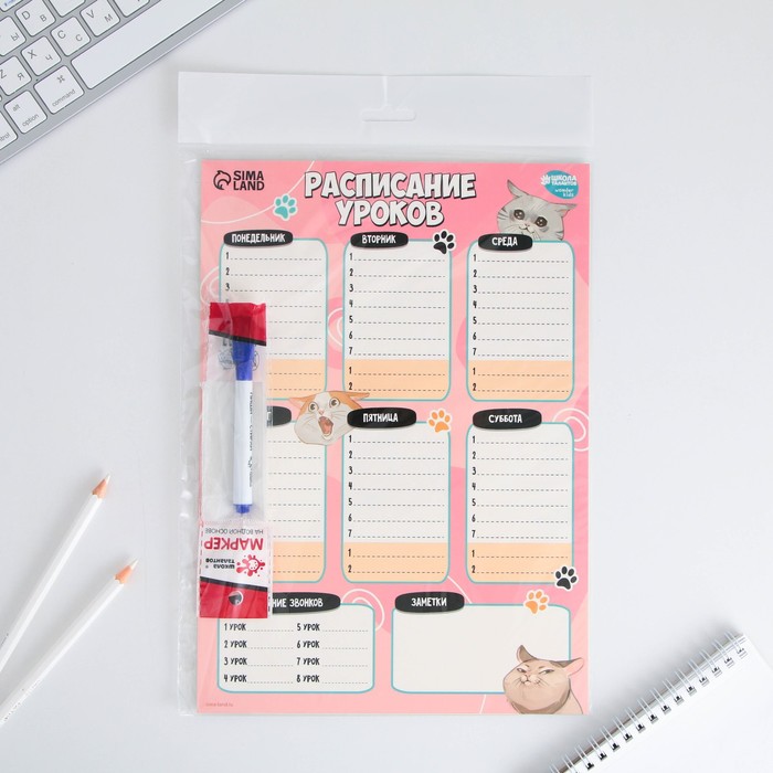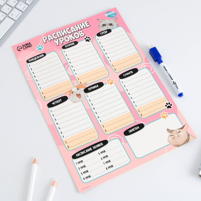 Магнитное расписание уроков многоразовое «Забавные котики», А3, с маркером
