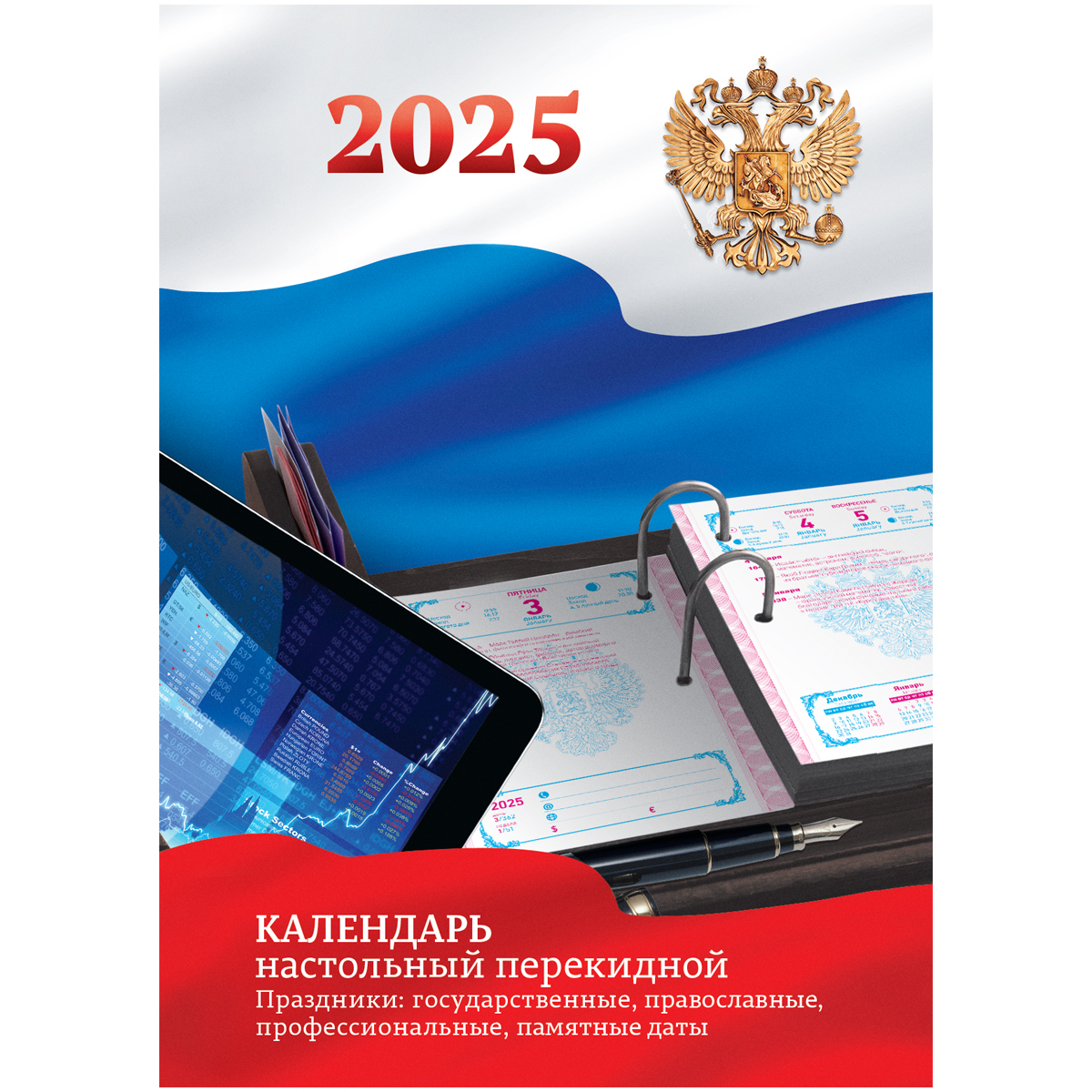 Календарь настольный перекидной BG, 160л, блок офсетный цветной с Российской символикой, 2025 год в подарочной коробке
