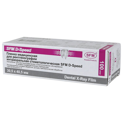Рентгеновская пленка стоматологическая SFM D-SPEED, КОМПЛЕКТ 100 листов, 30,5х40,5 мм, 629143