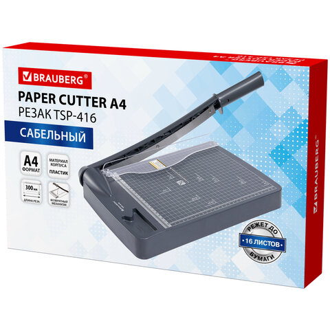 Сабельный резак для бумаги BRAUBERG "KATANA TSP-416" подходит для домашнего и офисного применения. Позволяет одновременно разрезать до 16 бумажных листов формата А4.