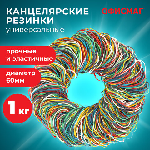 Резинки банковские универсальные диаметром 60 мм, ОФИСМАГ 1000 г, цветные, натуральный каучук, 440090