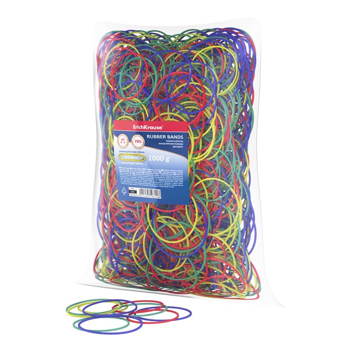Резинки банковские TPR универсальные, диаметр 60 мм, 1000 г, ЯРКИЕ ЦВЕТА, BRAUBERG SPECIAL, 440194